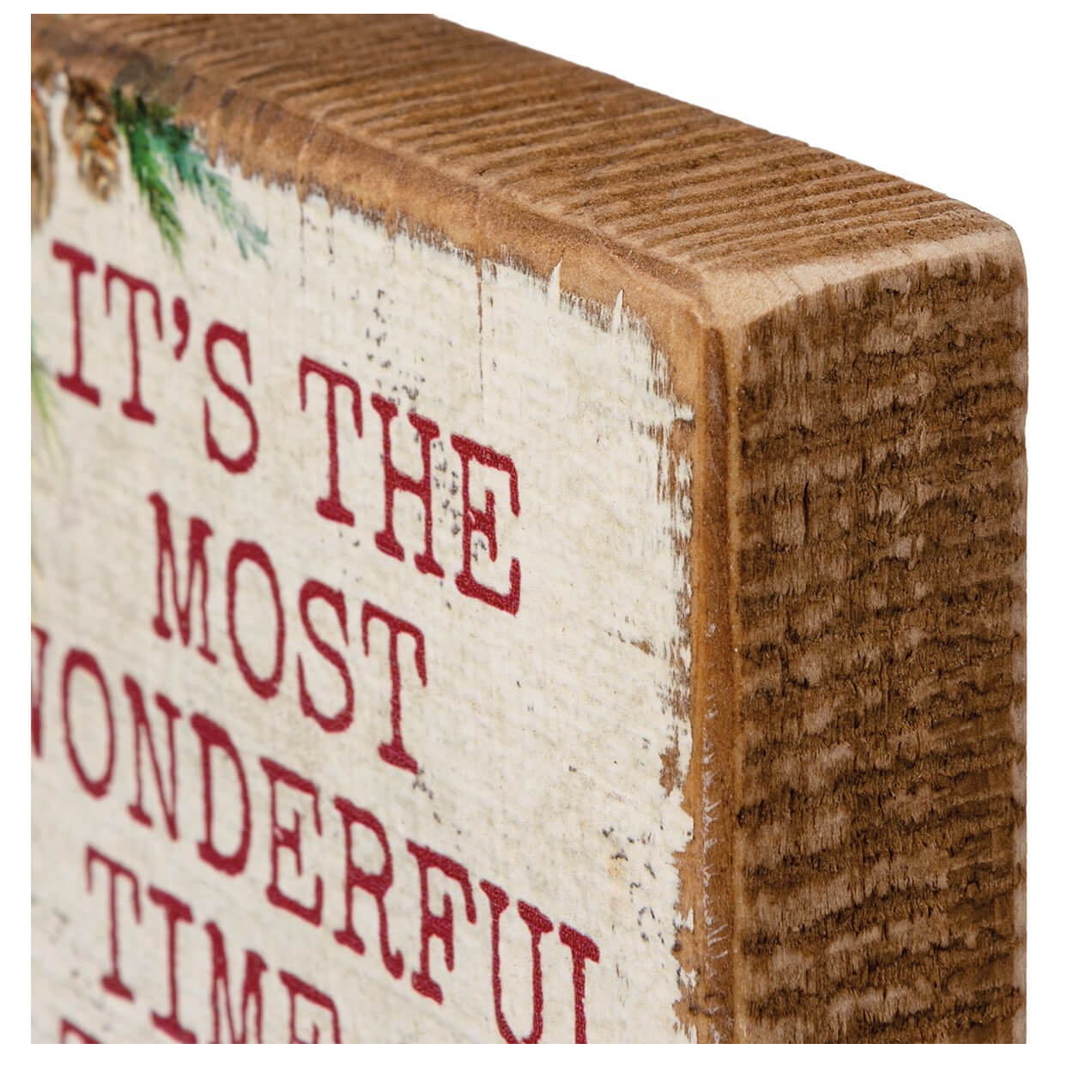 The season of joy, laughter and togetherness deserves to be celebrated in every corner of your home, and the "Most Wonderful Time of the Year" Block Sign is a delightful reminder of that. With its rustic charm and vintage-inspired design, this wood block sign from Primitives By Kathy brings a cozy, nostalgic feel to your holiday décor.