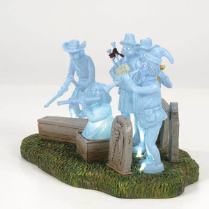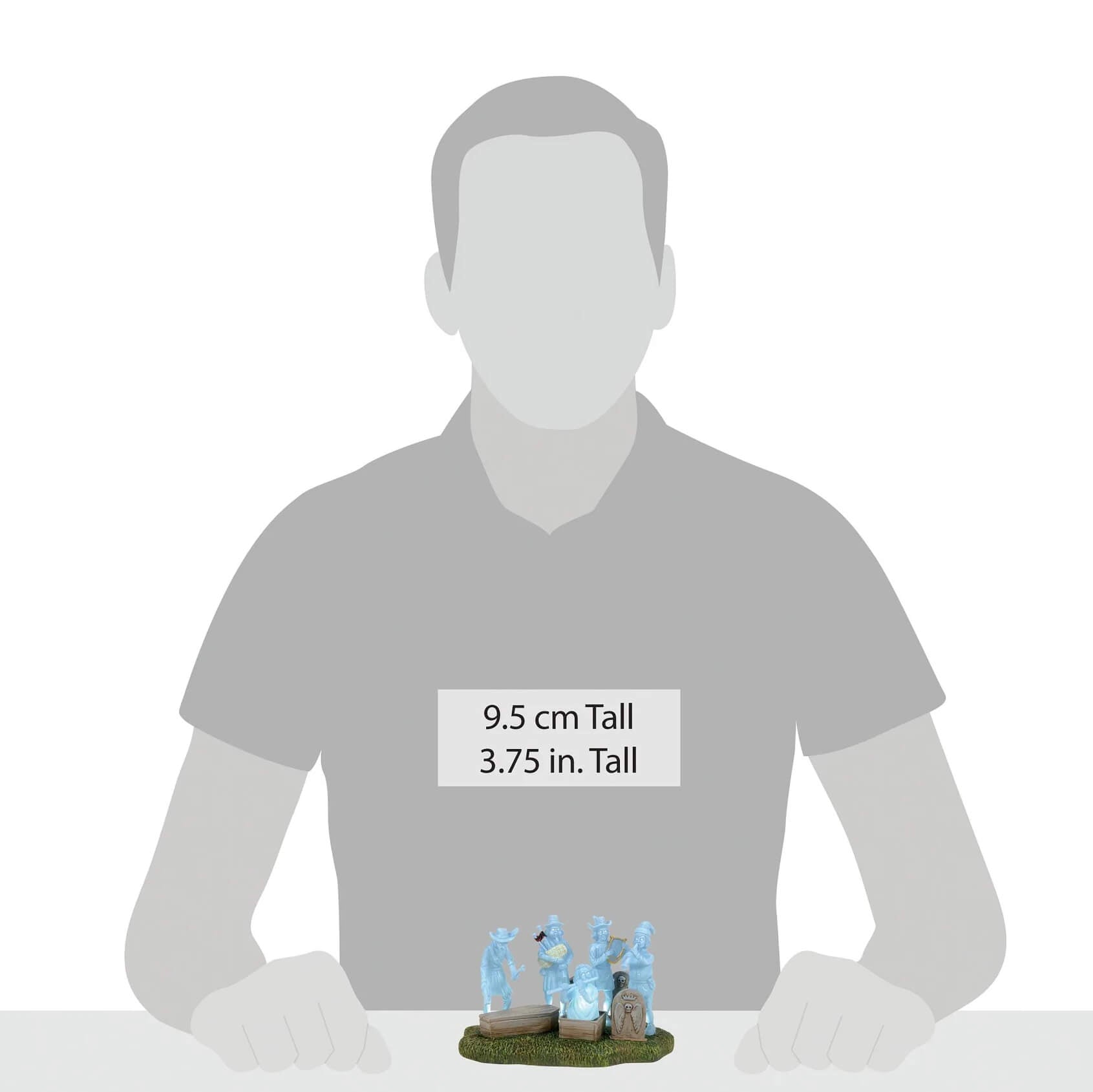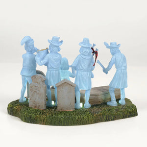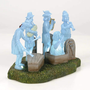 Strike up the boooo-gie band! The Phantom Five by Department 56 is ready to haunt your Halloween village with some seriously spirited tunes. This ghostly ensemble of musical misfits includes a flute-toting phantom, a lyre-loving apparition, a bagpiping banshee, a clarinet-carrying spook, and one bone-drumming ghoul keeping rhythm on a coffin (talk about killer percussion!).