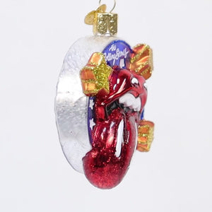 The Rolling Stones Tongue ornament by Old World Christmas is instantly recognizable, featuring the iconic red lips and tongue logo front and center in glossy glass and glitter detail. Set against a backdrop of deep blue with sparkling stars and golden accents, it feels vibrant, loud, and full of personality. Flip it around and you’ll find a glittered Union Jack, a nod to the band’s British roots that adds an extra layer of meaning and visual interest.