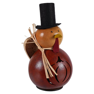 Say hello to Theodore, the most dapper turkey in town, ready to light up your Thanksgiving with his charming presence! Dressed to impress in his top hat and proudly displaying his belly carved with the image of a pumpkin. Crafted from a natural gourd, Theodore exemplifies the skill and artistry of the Meadowbrooke Gourds artisans.