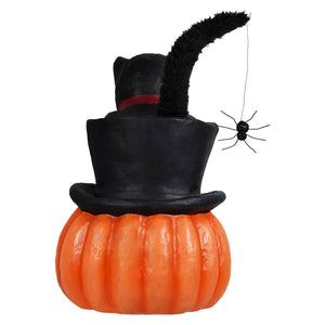 This Halloween add the Top Hat Surprise Jack O'Lantern, a delightful creation by renowned designer, Bethany Lowe to your decor! This enchanting piece captures the essence of Halloween with its spectacular and classic design.