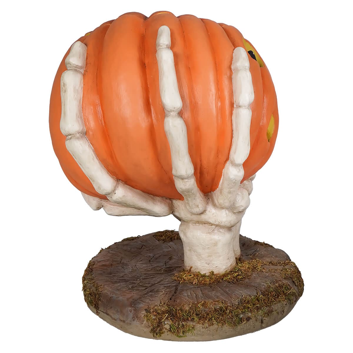 This pumpkin is not just any pumpkin, but one with a face frozen in a surprised expression – the epitome of "Ut-Oh, gotcha!" But what's this? A large skeletal hand reaching up from the ground, determined to grab this unsuspecting gourd. It's not just a decoration; it's a Halloween hijinx in the making!