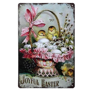 Vintage "Joyful Easter" Chicks In Easter Basket Metal Sign