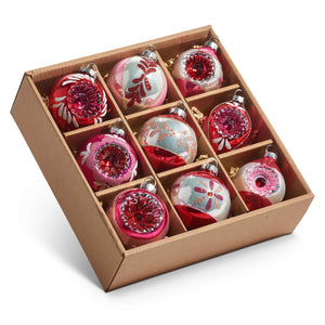 Vintage Pink Ball & Finial Reflector Ornaments Box Set/9