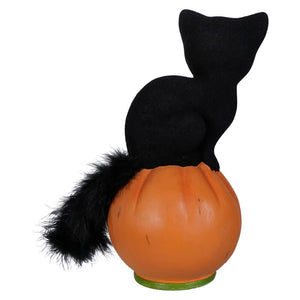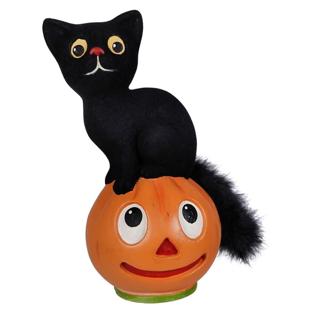 Bethany Lowe Designs invites you to embrace the vintage whimsy of a cat and a pumpkin, harmonizing in a scene that's both charming and delightful. It's a conversation starter, a statement piece, and the epitome of feline grace.