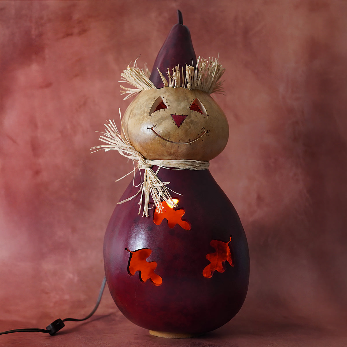 Meet Warehime, the Extra Large Lighted Scarecrow Gourd by Meadowbrooke Gourds—because nothing says “harvest hero” like a gourd that glows and guards your decorative turf with a straw-stuffed smile. Handcrafted in the USA and radiating rustic charm, this oversized autumn sentinel doesn’t just scare crows—it charms guests, lights up rooms, and possibly moonlights as the mayor of Gourdville.