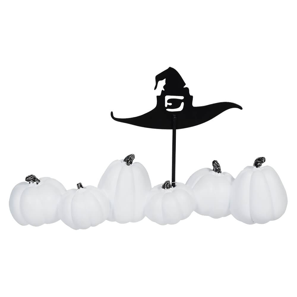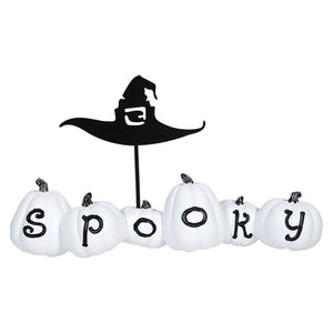 Take the "spook" factor up a notch this Halloween season with these White Spooky Pumpkins With Witch Hats! Designed by our friends at K&K Interiors, they are sure to add some haunt-worthy vibes and ignite your inner witch. These enchanting pumpkins feature “Spooky” carved in a series of white pumpkins with a witch hat placed on top of stick out of the pumpkins. Whether you’re adding them to your home or office, these added touches will put everyone into the Halloween spirit. For true thrill seekers who can’t get enough of this haunting holiday – this is the final touch you need. Add some character to your living space and let these spooky pumpkins add a dash of fun this Halloween season!