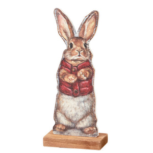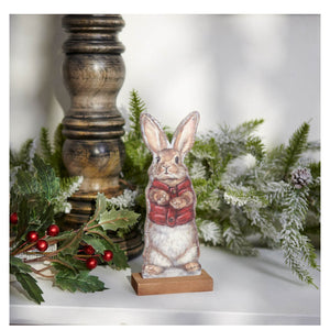 Hop into holiday cheer with the Winter Bunny Stand Up by Michele Kixmiller for Primitives by Kathy—a multi-season marvel who proves that festive fashion knows no bounds. Dressed in a charming red vest and sporting the fluffiest tail in town, this brown bunny is ready to bring joy from Christmas morning to Easter brunch.