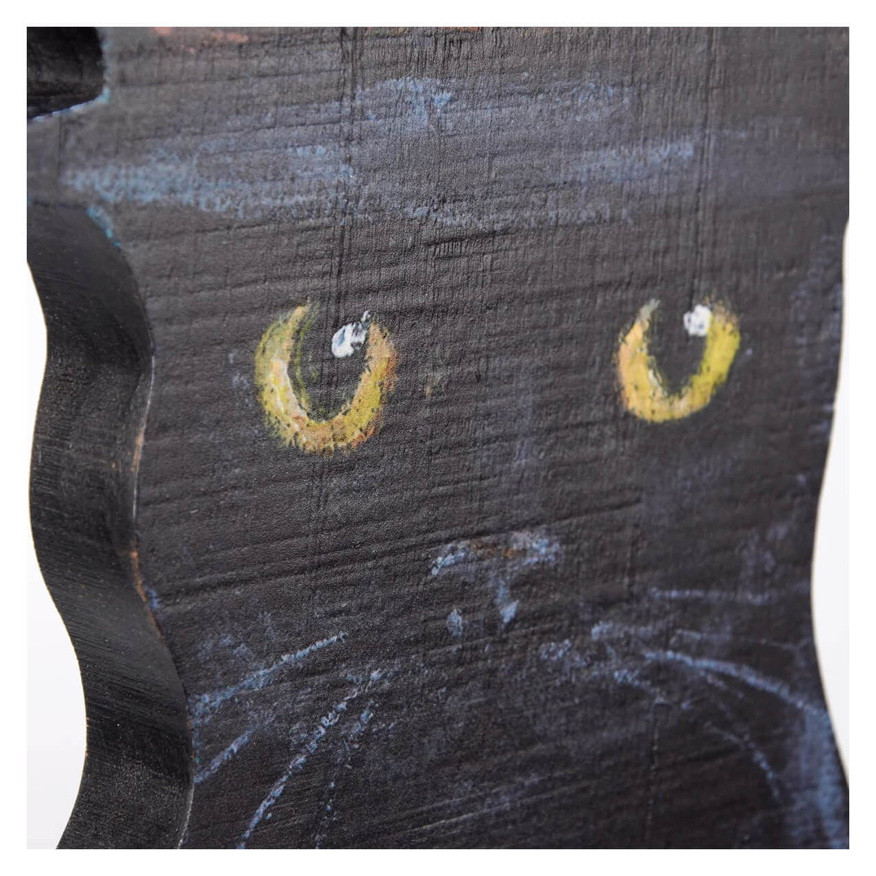With the option to lean it against a surface or hang it on the wall using the included sawtooth hanger, this piece offers flexibility in how you choose to display it. Whether you’re looking to greet trick-or-treaters with a spooky flair or simply add some seasonal decor to your home, this black cat and pumpkin duo is sure to do the trick.