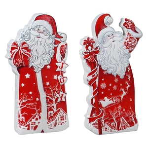 Wood Engraved Jolly Santa Standing Blocks Set/2