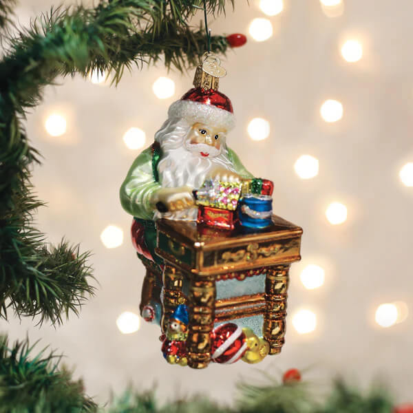 Text on Old World hang tag: Santa spends his days and into the wee hours of the morning working to create the finest of toys for the good little boys and girls around the world year after year. The dedication and attention to detail that Santa exemplifies is to be recognized and celebrated.