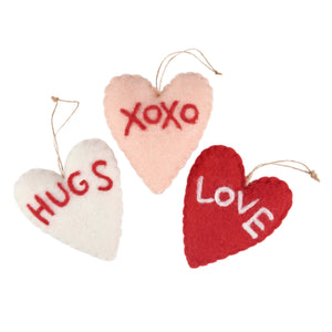 XOXO Wool Heart Ornaments Set/3