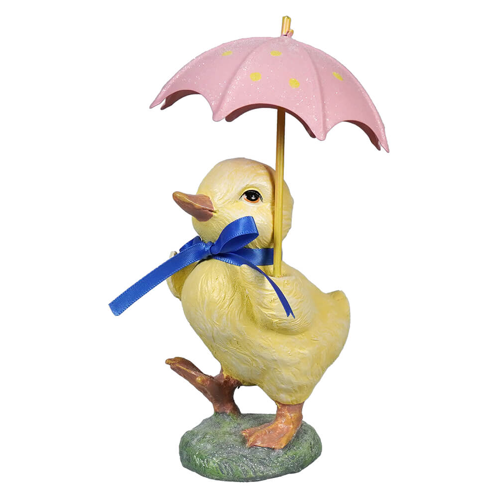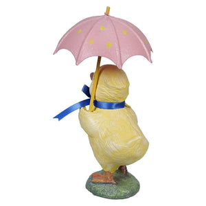 Yellow Chick With Blue Ribbon & Holding Pink Umbrella